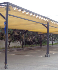 Thanh đỡ: Dùng khung nhôm đối với những loại mái bạt xếp có kích thước nhỏ điều này làm giảm trọng lượng của mái xếp. Đối với những loại mái hiên bạt xếp hay mái hiên xếp lớn hơn nên sử dụng khung inox hoặc khung thép nhằm tạo độ vững chắc hơn.